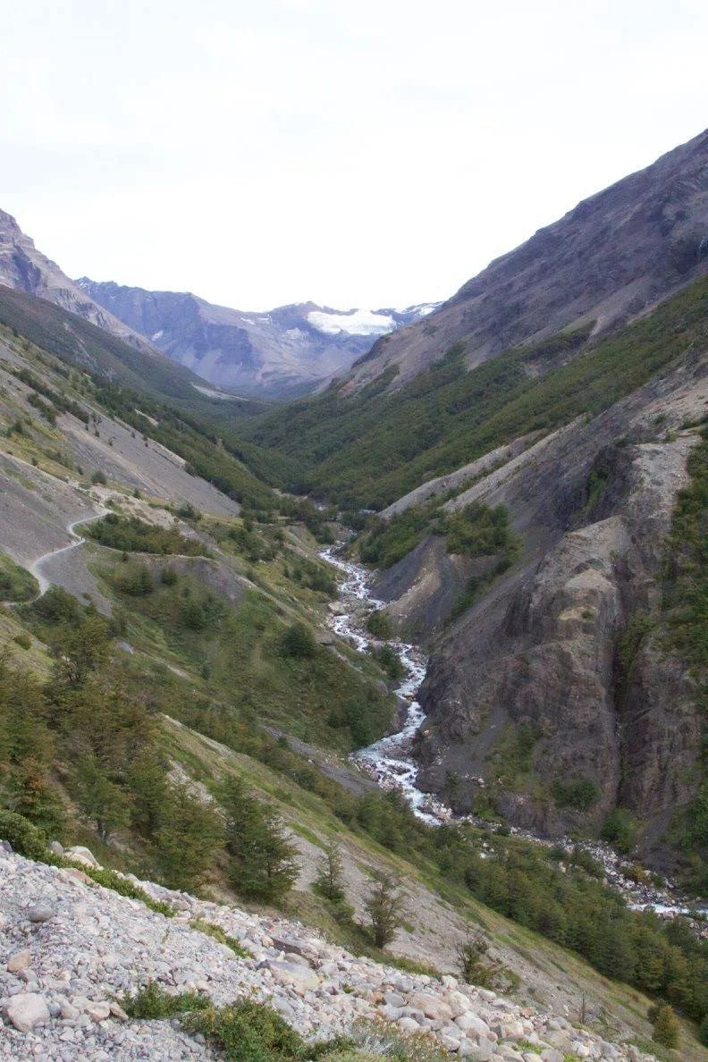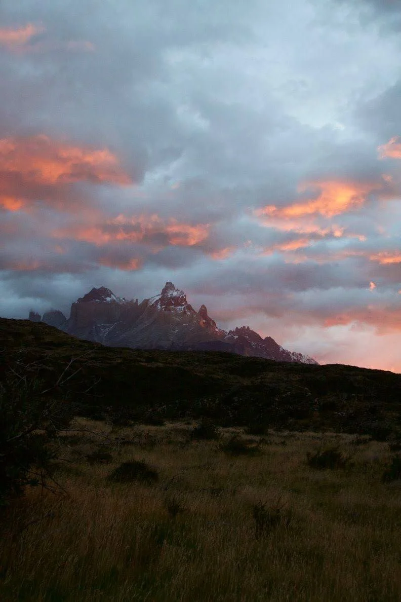 Warm shades of pink cupped the dark blue underbelly of early morning clouds in the Chilean Patagonia. It was our first morning waking from yellow tents pitched in the brush outside the warm, infinitely more comfortable refugio where we dined. Early morning fog sheathed the mountains hiding their colors and contrasts by lack of light; a bulk black curved figure in the space where rolling hills belonged. As the pink grew a deeper shade of neon, and the glacier blue waters of the lake nearby began to proudly show its colors, the sky lit on fire. Orange rays painted the Paine Grande as we loaded up our backpacks with pre-made sandwiches and Milky Ways (the ultimate fuel). Hiking boots I tried on for the first time the morning I left for my trip were tied tight, and we were layered three times over, ready for any type of Patagonian weather. The first big day of hiking promised 15+ miles and over 8 hours of up and around trekking, which scared me not for the length of time or the terrain, but the time spent in my own head. My tiny legs deceivingly sped faster than most; the New Yorker ingrained in my spirit.